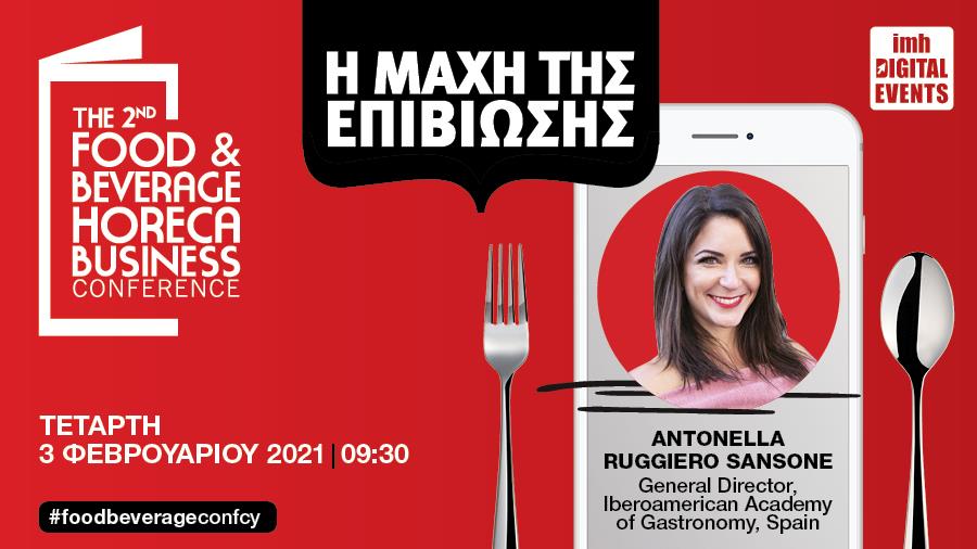 και προώθησης για την επανενεργοποίηση των τουριστικών και γαστρονομικών βιομηχανιών, ιδίως μετά την πανδημία covid-19 και τις επιπτώσεις της στον επισιτιστικό κλάδο, θα μας μιλήσει η Antonella Ruggiero Sansone, γενική διευθύντρια της Iberoamerican Academy of Gastronomy Ισπανίας.