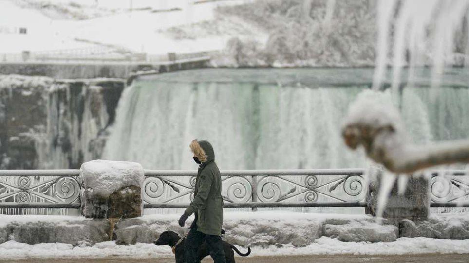 Οι πολικές θερμοκρασίες κατάφεραν να παγώσουν ένα από τα διασημότερα τουριστικά σημεία της Αμερικής και του Καναδά.