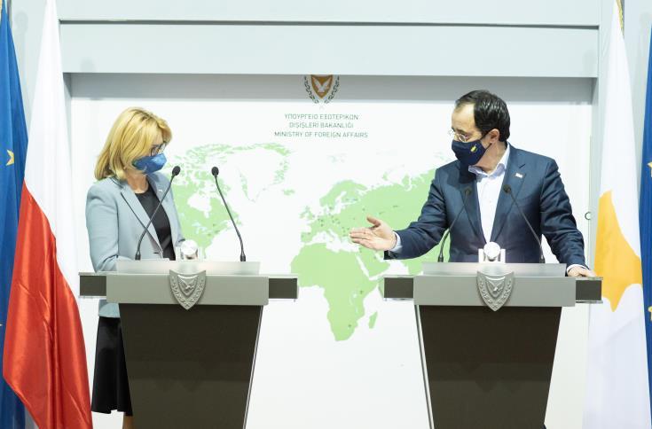 Διακήρυξη Προθέσεων των Υπουργείων Εξωτερικών Κύπρου και Πολωνίας υπεγράφη τη Δευτέρα στη Λευκωσία από τον Υπουργό Εξωτερικών, Νίκο Χριστοδουλίδη, και την Πρέσβειρα της Δημοκρατίας της Πολωνίας στην Κύπρο, Irena Lichnerowicz-Augustyn, για τους εορτασμούς της 60ής επετείου της εγκαθίδρυσης διπλωματικών σχέσεων, μεταξύ Κύπρου και Πολωνίας.