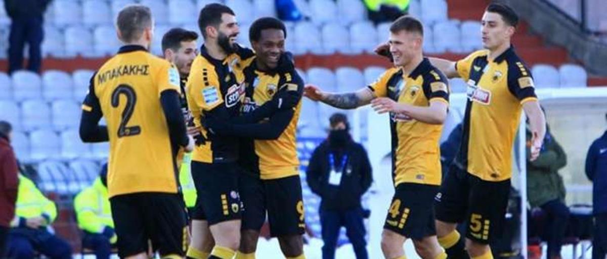 Η ΑΕΚ -εκμεταλλευόμενη και τη φουλ επιθετική σύνθεσή της- μπήκε «φορτσάτη» από το ξεκίνημα της αναμέτρησης. Πίεζε αρκετά ψηλά, επέβαλε τον ρυθμό της και κατάφερε να δημιουργήσει μία σειρά από ευκαιρίες στο πρώτο εικοσάλεπτο. Μάλιστα, μπόρεσε να εξαργυρώσει την υπεροχή της χάρη στον Ολιβέιρα. Στο 11′ ο Μαξιμένκο γύρισε απρόσεκτα την μπάλα προς τον τον Μπάγιτς, ο Πορτογάλος φορ κυνήγησε τη φάση καταφέρνοντας να την «τσιμπήσει», με τον με τον Μπάγιτς να τον ρίχνει κάτω. Ο κ. Γκορτσίλας λαμβάνοντας το «OK» από τον VAR έδωσε την παράβαση, με τον επιθετικό της «Ένωσης» να αναλαμβάνει ο ίδιος την εκτέλεση, δίνοντας προβάδισμα στην ομάδα του (1-0 στο 14′).