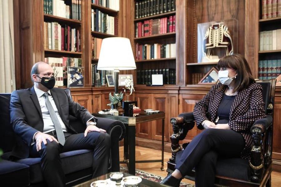 Δεκτός από την Πρόεδρο της Δημοκρατίας της Ελλάδας, Κατερίνα Σακελλαρόπουλου έγινε το πρωί της Τρίτης ο Υπουργός Άμυνας της Κύπρου, Χαράλαμπος Πετρίδης.