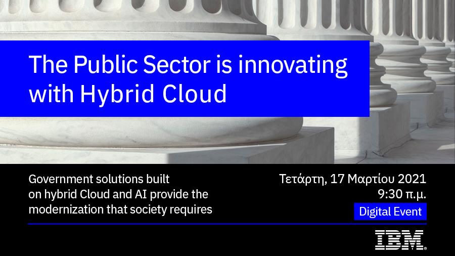 Η IBM διοργανώνει διαδικτυακή εκδήλωση με θέμα «The Public Sector is innovating with Hybrid Cloud», την Τετάρτη 17 Μαρτίου 2021, στις 9:30 π.μ. μέχρι τις 11:30 π.μ.