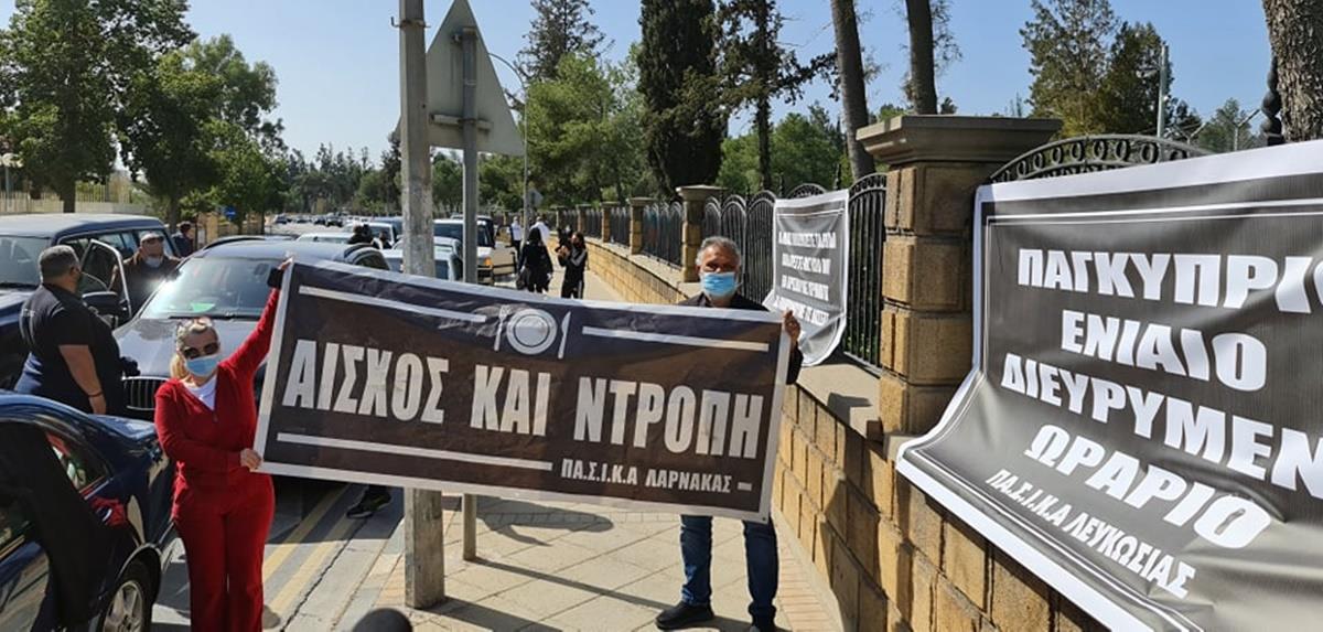 Εκδήλωση διαμαρτυρίας έξω από το Προεδρικό πραγματοποίησαν μέλη του Παγκύπριου Συνδέσμου Ιδιοκτητών Κέντρων Αναψυχής (ΠΑΣΙΚΑ) οι οποίοι στη συνέχεια μετέβησαν στη Βουλή των Αντιπροσώπων.