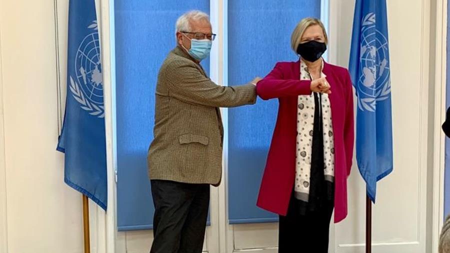 Η ΕΕ είναι σθεναρά δεσμευμένη να υποστηρίξει τις προσπάθειες για επανέναρξη των συνομιλιών για το Κυπριακό, ανέφερε ο Ύπατος Εκπρόσωπος της ΕΕ, Ζοζέπ Μπορέλ, έπειτα από συνάντησή του το πρωί με την Ειδική Αντιπρόσωπο του Γενικού Γραμματέα των Ηνωμένων Εθνών στην Κύπρο, Ελίζαμπεθ Σπέχαρ, στον χώρο όπου βρίσκονται τα γραφεία των Ηνωμένων Εθνών, στην υπό τον έλεγχό τους περιοχή στη Λευκωσία.