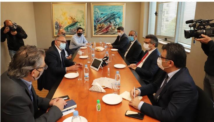 Ο Πρόεδρος του ΔΗΣΥ Αβέρωφ Νεοφύτου υποδέχτηκε σήμερα στα γραφεία του κόμματός του αντιπροσωπεία του Ρεπουμπλικανικού Κόμματος (CTP) υπό τον Τουφάν Ερχιουμάν, συνοδευόμενος από τον Αναπληρωτή Πρόεδρο Χάρη Γεωργιάδη, τον Υπεύθυνο Διεύθυνσης Κυπριακού Χαράλαμπο Σταυρίδη και τον Διευθυντή του Γραφείου του Γιώργο Γεωργίου.