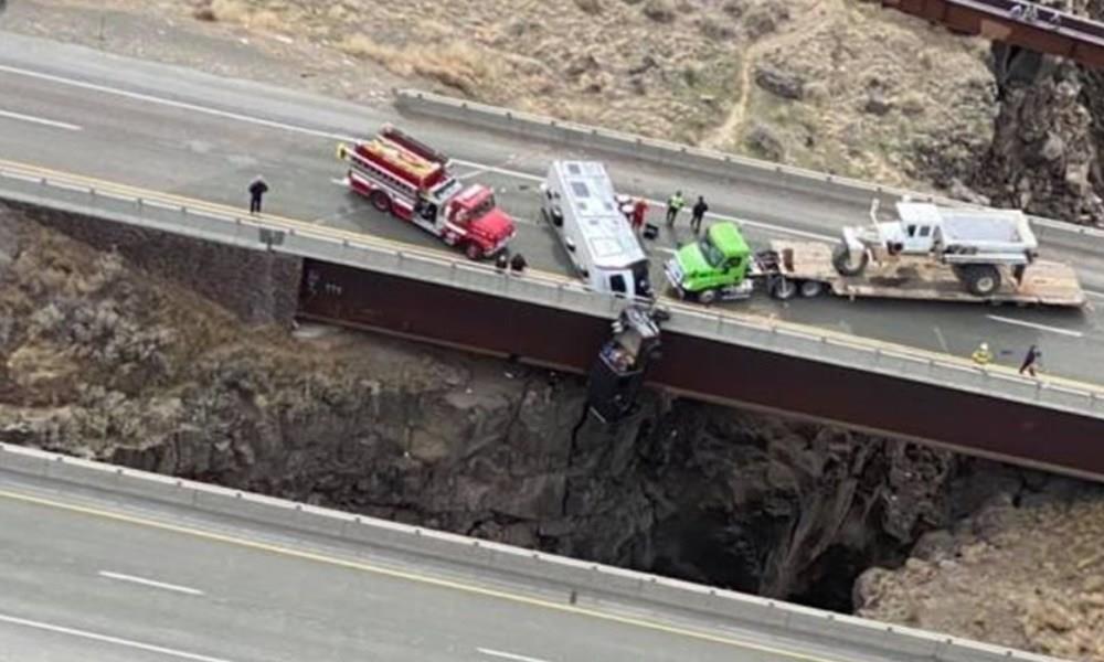 Με κομμένη την ανάσα έμειναν οι περαστικοί σε αερογέφυρα στο Αϊντάχο των ΗΠΑ την περασμένη Δευτέρα, όταν είδαν ένα pick-up να κρέμεται σε υψόμετρο περίπου 30 μέτρων.