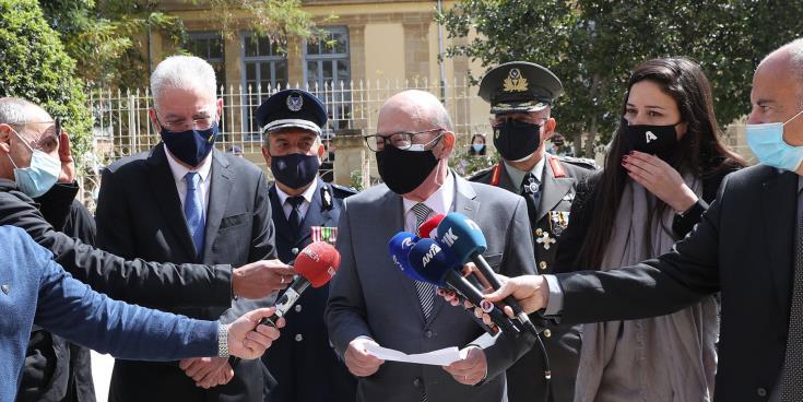 Σε δηλώσεις ύστερα από την πανηγυρική δοξολογία που τελέστηκε το πρωί στον Ιερό Ναό Παναγίας Φανερωμένης στη Λάρνακα, ο Υπουργός Άμυνας ανέφερε ότι «σήμερα είναι διπλή γιορτή. Η εθνική παλιγγενεσία αποτελεί πηγή έμπνευση του κάθε υποστηρικτή του δικαίου και της ελευθερίας».