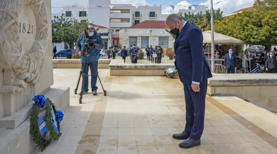 Στεφάνια κατέθεσαν ο Υπουργός Εσωτερικών Νίκος Νουρής, ο Αντιπλοίαρχος Μαζαράκης και ο Αντιδήμαρχος Νίκος Σύκας, ως επικεφαλής του Δήμου Λεμεσού, καθώς ο Δήμαρχος Νίκος Νικολαϊδης, βρίσκεται σε αυτοπεριορισμό, ως στενή επαφή του Μητροπολίτη Λεμεσού που διαγνώστηκε προχθές με κορωνοϊό.