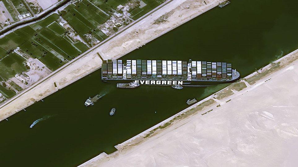 Οι φωτογραφίες δείχνουν το μήκους 400 μέτρων πλοίο να έχει κυριολεκτικά «σφηνώσει» στο κανάλι, ενώ η Airbus Space στην ανάρτησή της σημειώνει ότι οι συγκεκριμένες εικόνες ελήφθησαν σήμερα το πρωί και δείχνουν το εμπορικό πλοίο να παραμένει κολλημένο στο κανάλι.