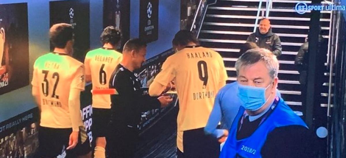 The cheek of the linesman asking Haaland to sign his cards. Madness. pic.twitter.com/fdfBYaQQou