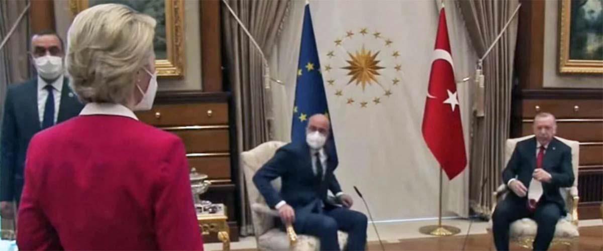 Η αμηχανία της Φον ντερ Λάιεν την ώρα που αντιλαμβάνεται πως ο Ερντογάν την ανάγκασε να κάτσει απομακρυσμένη στη συνάντηση, σε έναν καναπέ, έκανε τον γύρο του κόσμου, με ανώτατους αξιωματούχους της ΕΕ να ασκούν σκληρή κριτική πρωτίστως στον Τούρκο πρόεδρο.