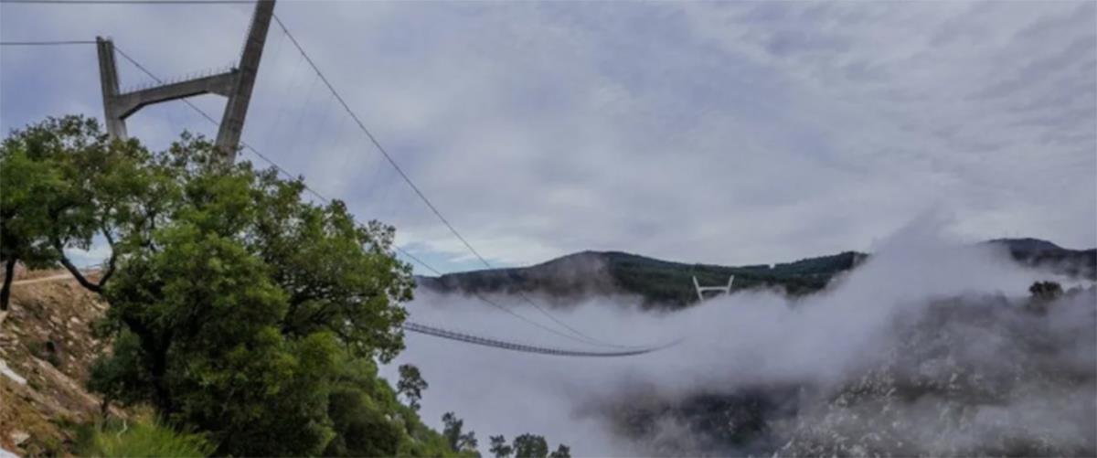 Κρυμμένη πίσω από βραχώδεις οροσειρές μέσα στο εθνικό πάρκο Arouca -ένα καταπράσινο Τοπίο Φυσικού Κάλλους, όπως το έχει αναγνωρίσει η Unesco -, η μήκους 516 μέτρων πεζογέφυρα αιωρείται σε ύψος 175 μ. πάνω από τον ποταμό Πάιβα.