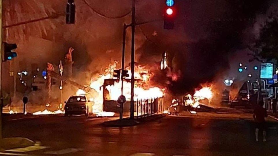 Ο πύραυλος φαίνεται να χτύπησε ένα λεωφορείο στην πόλη.