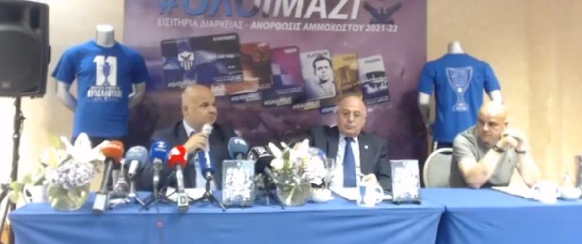 Στη συνέντευξη, το παρόν τους έδωσαν ο μεγαλομέτοχος της ομάδας Χρίστος Πουλλαΐδης και ο εκτελεστικός πρόεδρος Ευγένιος Χαμπουλλάς.