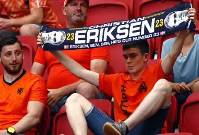 Οι φίλαθλοι των «οράνιε» κατά την διάρκεια της αναμέτρησης τοποθέτησαν στο γήπεδο, πλακάτ και πανό για τον Κρίστιαν Έρικσεν, ο οποίος κατέρρευσε στην διάρκεια του παιχνιδιού της Δανίας με την Φινλανδία.