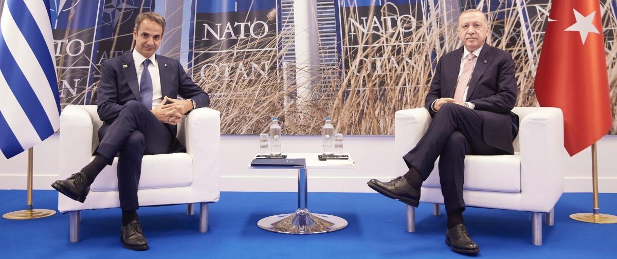 Μια ώρα ακριβώς κράτησε η συνάντηση του Έλληνα Πρωθυπουργού Κυριάκου Μητσοτάκη με τον Τούρκο πρόεδρο Ρετζέπ Ταγίπ Ερντογάν, μετά το πέρας των εργασιών της Συνόδου Κορυφής του ΝΑΤΟ. Κατά τη συνάντηση των δύο ανδρών αναμένετο να τεθούν στο τραπέζι όλα τα διμερή ζητήματα.