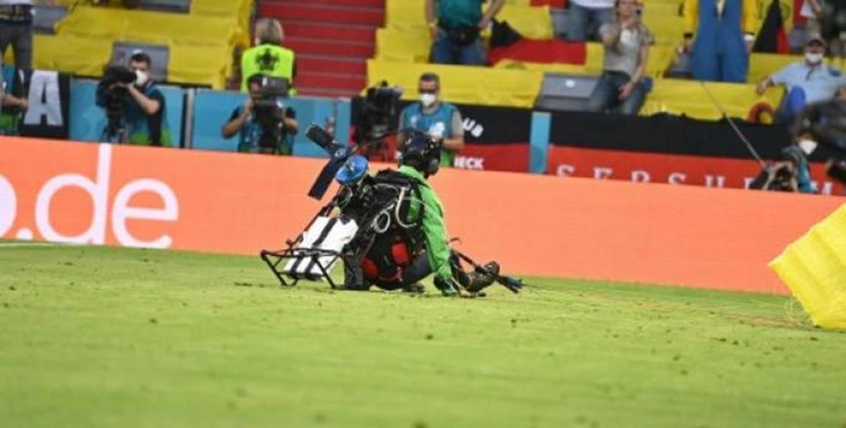 Ο συγκεκριμένος έγινε αντιληπτός από τους ποδοσφαιριστής την στιγμή που άρχισε την πτώση του και μάλιστα χτύπησε ένα καλώδιο ενώ συνέχισε την τρελή του πορεία, προκαλώντας μάλιστα τον τραυματισμό δύο ατόμων, ένας χτύπησε στο κεφάλι και ο άλλος στον ώμο, κοντά στον πάγκο της Γαλλίας.
