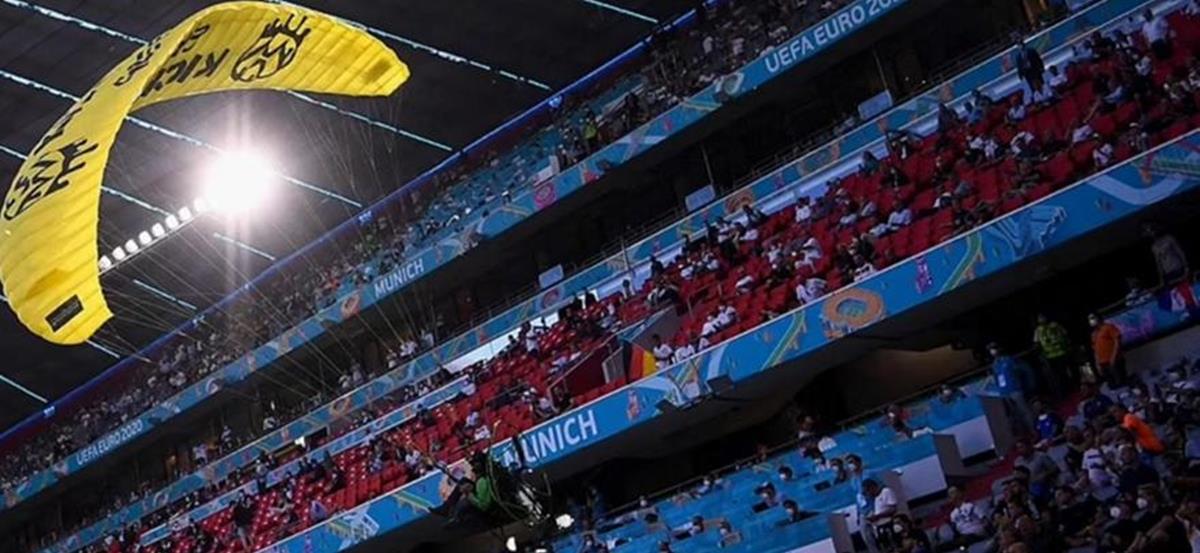Η προσγείωση ακτιβιστή της Greenpeace στον αγώνα της Γερμανίας με τη Γαλλία στην «Αλιάντς Αρένα» για το Euro τράβηξε τα βλέμματα, αλλά δεν ήθελε και πολύ να εξελιχθεί σε τραγωδία. Όπως έγινε γνωστό, κατά την προσγείωσή του και προτού γίνει αντιληπτό πως εκπροσωπούσε τη γνωστή οικολογική οργάνωση, ο 38χρονος ακτιβιστής λίγο έλειψε να πυροβοληθεί από ελεύθερους σκοπευτές υπό το φόβο να ήταν τρομοκράτης και να σχεδίαζε κάποια επίθεση!