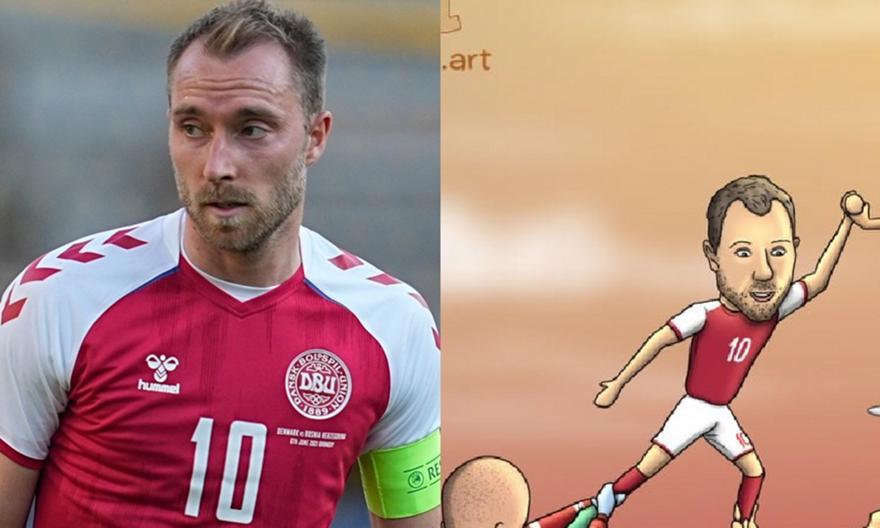 Ανατριχιαστικό σκίτσο για τον Έρικσεν και αυτούς που τον κράτησαν στη ζωή