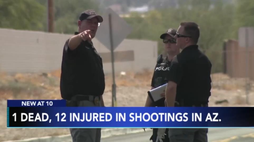 Ένας άνθρωπος έχασε τη ζωή του και άλλοι 12 τραυματίστηκαν, οι τρεις από σφαίρες, σε σειρά επιθέσεων που φέρεται να διέπραξε ένοπλος μετακινούμενος με αυτοκίνητο στην Αριζόνα, ανακοίνωσε χθες Πέμπτη η αστυνομία, η οποία διευκρίνισε πως έχει συλλάβει τον ύποπτο γι’ αυτές.