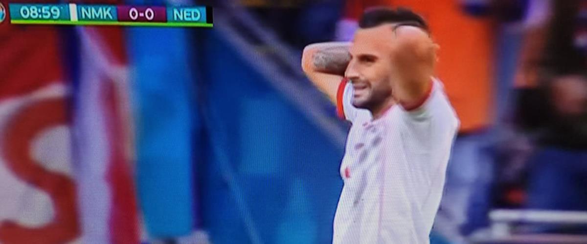 Πολύ κοντά στο να δώσει προβάδισμα στην Εθνική Σκοπίων από νωρίς έφθασε στο 9' ο Ιβάν Τρισκόφσκι, απέναντι στην Ολλανδία.