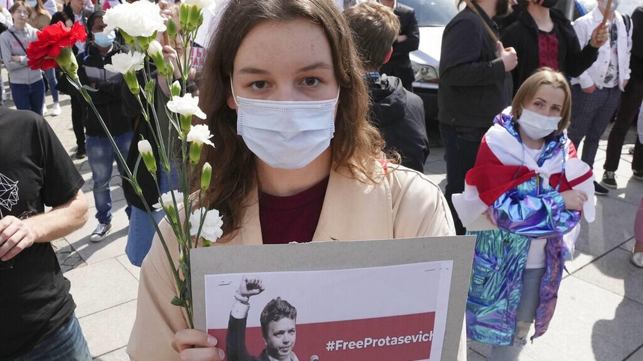 «Σήμερα, έχουμε αναλάβει συντονισμένες κυρώσεις ως απάντηση στην αναγκαστική προσγείωση της 23ης Μαΐου της πτήσης της Ryanair μεταξύ δύο κρατών-μελών της ΕΕ και της πολιτικά υποκινούμενης σύλληψης του δημοσιογράφου Ρoμάν Πρoτάσεβιτς και της συντρόφου του Σοφία Σαπέγκα, καθώς και στη συνεχιζόμενη επίθεση εναντίον των ανθρωπίνων δικαιωμάτων και των θεμελιωδών ελευθεριών» σημειώνεται στη δήλωση.