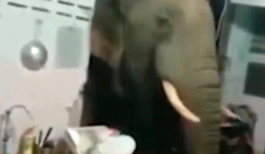 Η γυναίκα τράβηξε σε βίντεο την εισβολή κατά την οποία το συμπαθέστατο ζώο φαίνεται να χτυπάει ντουλάπια και συρτάρια στην κουζίνα του σπιτιού, αναζητώντας τροφή. Μάλιστα κάποια στιγμή το βίντεο δείχνει τον ελέφαντα να πιάνει κάτι με την προβοσκίδα του και το βάζει στο στόμα του.