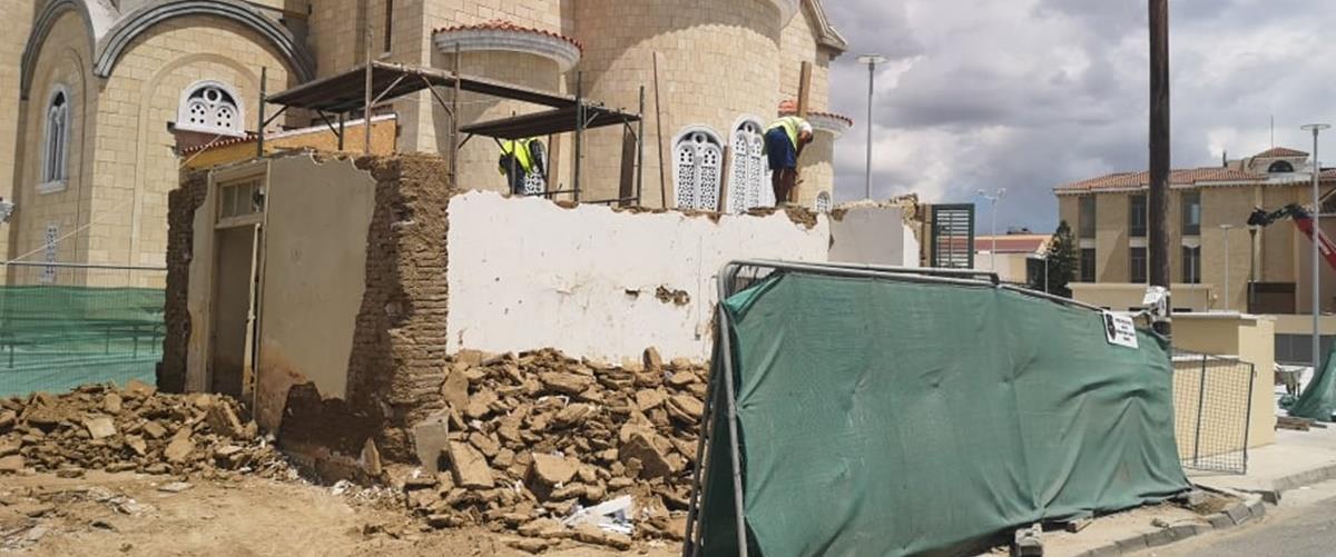 Σε πλήρη εξέλιξη βρίσκεται η αποκατάσταση των διατηρητέων, που κατεδάφισε τον περασμένο Ιανουάριο, μπουλντόζα της Αρχιεπισκοπής, κατά τη διάρκεια εργασιών για την ανέγερση του Καθεδρικού Ναού Αποστόλου Βαρνάβα.