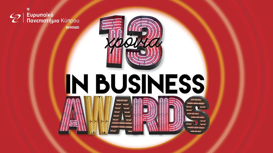 Τα 13α IΝ Βusiness Αwards παρουσιάζει το Ευρωπαϊκό Πανεπιστήμιο Κύπρου, powered by ΕPIC με Χρυσό Χορηγό την RCB, Αργυρούς Χορηγούς την ECOMMBX, το whisky Glenfiddich και τις Υπεραγορές Σκλαβενίτης και Χορηγό Επικοινωνίας τον Άλφα Κύπρου.