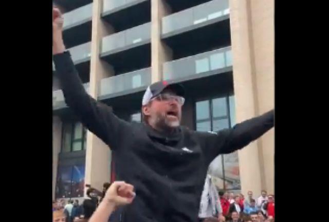 Ένας σωσίας του Γιούργκεν Κλοπ με καπέλο και ζακέτα της Λίβερπουλ κλέβει την παράταση, πίνοντας μπύρες και φωνάζοντας συνθήματα έξω από το Γουέμπλεϊ λίγο πριν από την σέντρα του αγώνα Αγγλίας-Γερμανίας.