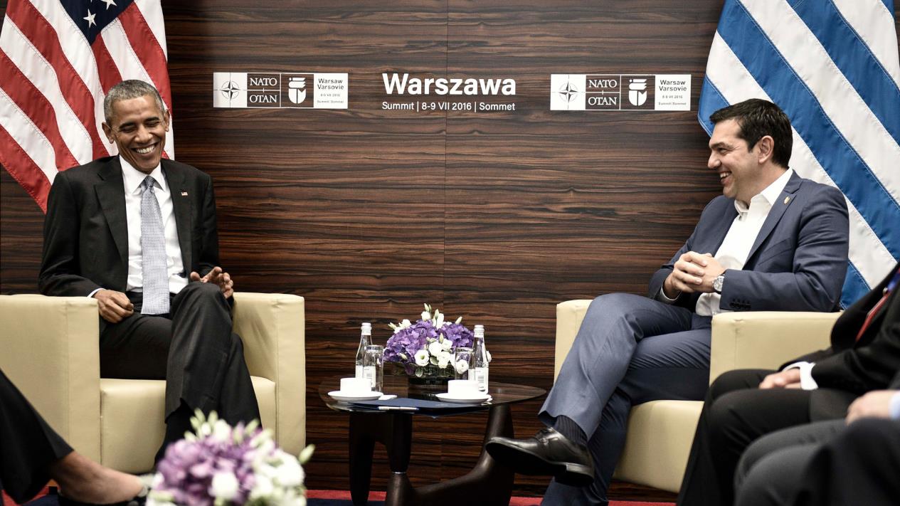 Η πορεία του Κυπριακού, το ελληνικό πρόγραμμα και χρέος αλλά και το προσφυγικό κυριάρχησαν στην περίπου 30λεπτη συνάντηση που είχαν στο περιθώριο της Συνόδου Κορυφής του ΝΑΤΟ, νωρίς το απόγευμα του Σαββάτου, ο Αμερικανός Πρόεδρος Μπαράκ Ομπάμα και ο Έλληνας Πρωθυπουργός Αλέξης Τσίπρας. Στη συνάντηση παρόντες ήταν τόσο ο Υπουργός Εξωτερικών Νίκος Κοτζιάς όσο και ο Υπουργός Εθνικής Άμυνας Πάνος Καμμένος.