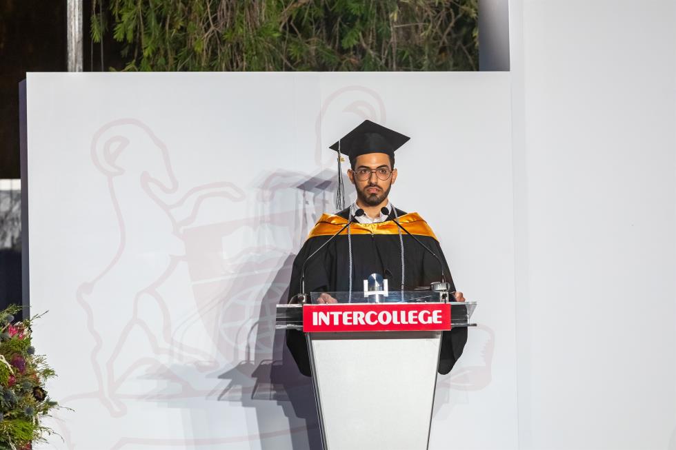 Εκ μέρους των αποφοίτων, απηύθυνε χαιρετισμό o Παντελής Φιάκκου του Πτυχιακού προγράμματος “Διεύθυνση Επισιτιστικών Τεχνών”, του Intercollege Λευκωσίας.