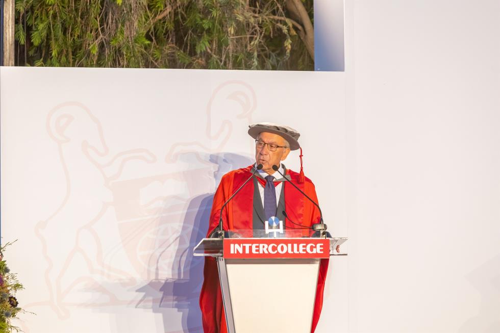 Κύριος ομιλητής της τελετής ήταν ο Δρ. Ηλίας Μαρκάτζιης, Διευθυντής Μέσης Τεχνικής και Επαγγελματικής Εκπαίδευσης και Κατάρτισης που ανέφερε μεταξύ άλλων ότι η τελετή αποφοίτησης ενός σημαντικού κολλεγίου όπως το Ιntercollege, αποτελεί μια γιορτή για όλους όσοι πιστεύουν και τιμούν την Επαγγελματική Εκπαίδευση και Κατάρτιση. Ταυτόχρονα αποτελεί μια σημαντική στιγμή για τη βιομηχανία και τις υπηρεσίες του τόπου μας, που υποδέχονται επίσημα σήμερα μια νέα συγκομιδή αποφοίτων υψηλού επιπέδου