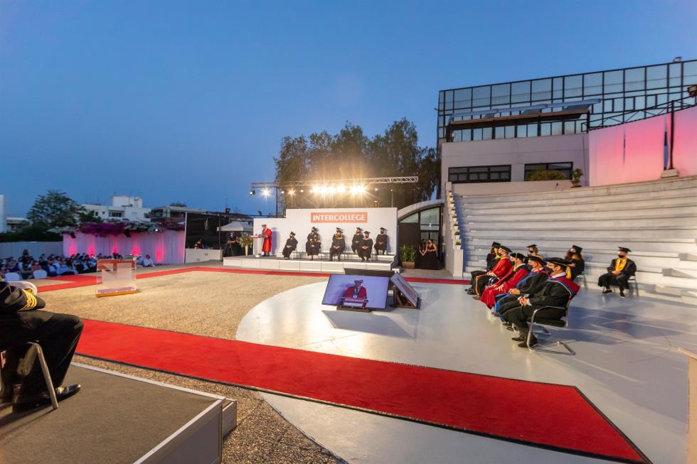 Πραγματοποιήθηκε δια ζώσης, τηρουμένων όλων των προβλεπόμενων πρωτοκόλλων για την πανδημία την περασμένη εβδομάδα στο ανοικτό αμφιθέατρο του Πανεπιστημίου Λευκωσίας η Τελετή Αποφοίτησης 2020 και 2021 των Intercollege Λευκωσίας, Λεμεσού και Λάρνακας παρουσία  πλήθους κόσμου, της ηγεσίας  και της ακαδημαϊκής κοινότητας του Κολλεγίου αλλά και του Πανεπιστημίου.
