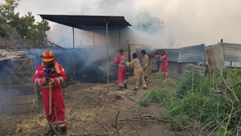 Πέραν από τα μέλη Πυρόσβεσης στην περιοχή επιχειρούν και άτομα της Ομάδας Άμεσης Ανταπόκρισης Κύπρου (φώτος).