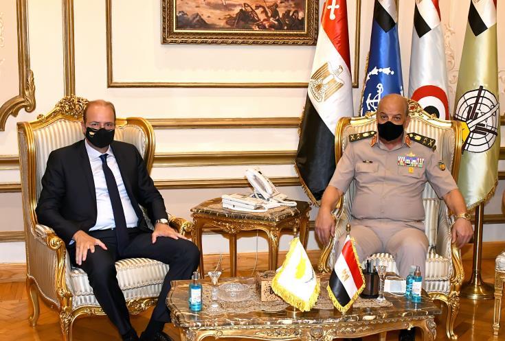 «Η στρατηγική συνεργασία Αιγύπτου - Κύπρου είναι πολυσχιδής και στηρίζεται σε πολλούς τομείς», τονίζει σε σχετική του ανακοίνωση το αιγυπτιακό Υπουργείο Άμυνας.