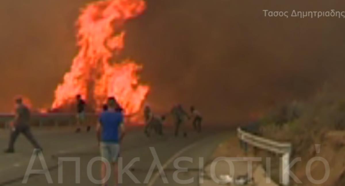 Όπως θα δείτε στο πιο κάτω βίντεο, ο κινηματογραφιστής Τάσος Δημητριάδης, κατέγραψε τη στιγμή που η φωτιά κινείται με μανία προς τον δρόμο, όπου βρίσκονταν πολίτες, οι οποίοι έτρεχαν να γλιτώσουν.