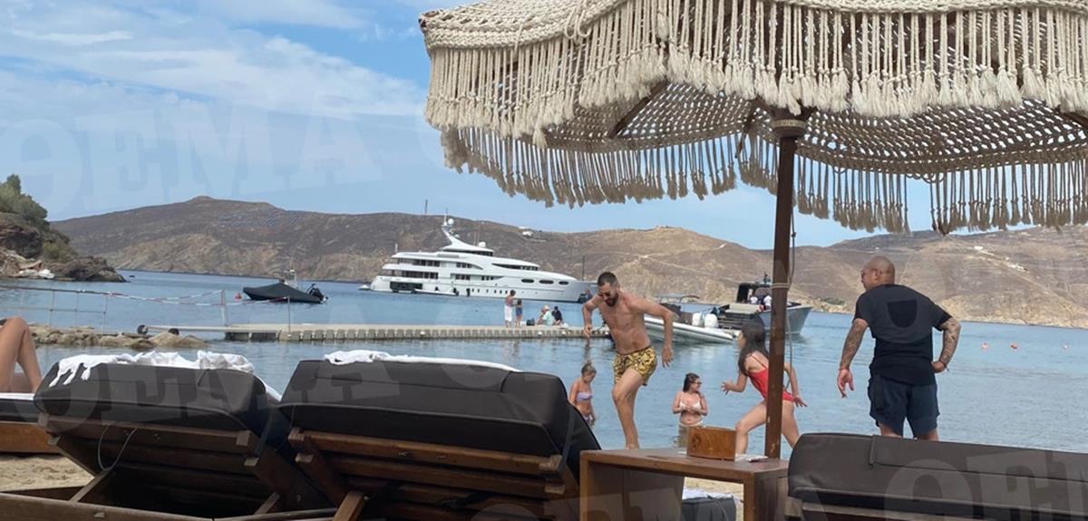Αρκετοί λουόμενοι τον αναγνώρισαν όμως τον άφησαν ήσυχο να απολαύσει την πρώτη μέρα των διακοπών του στη Μύκονο, μετά τον αποκλεισμό της Γαλλίας από το Euro και τα παιχνίδια με την μικρή του κόρη.