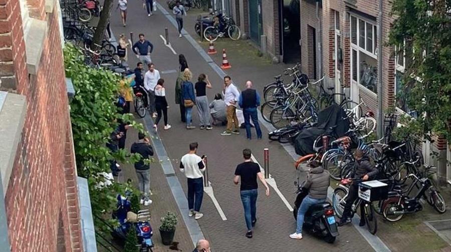Η εφημερίδα Parool δημοσίευσε μια φωτογραφία από το σημείο, με πολλούς ανθρώπους συγκεντρωμένους γύρω από ένα άτομο που βρίσκεται στο έδαφος.