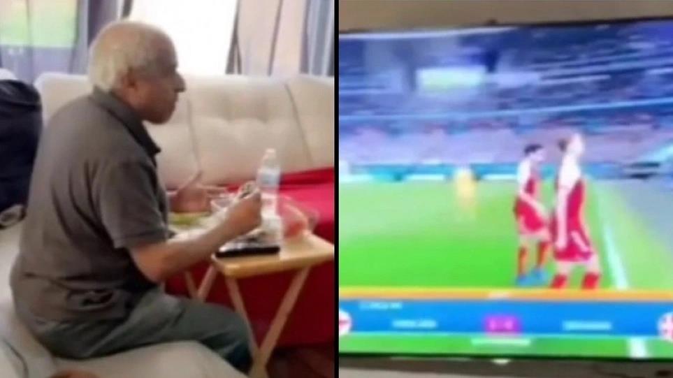 Viral έχει γίνει τις τελευταίες ώρες στα social media, το video που δείχνει έναν ηλικιωμένο άνδρα να παρακολουθεί στην τηλεόραση του σπιτιού του το Αγγλία-Δανία.