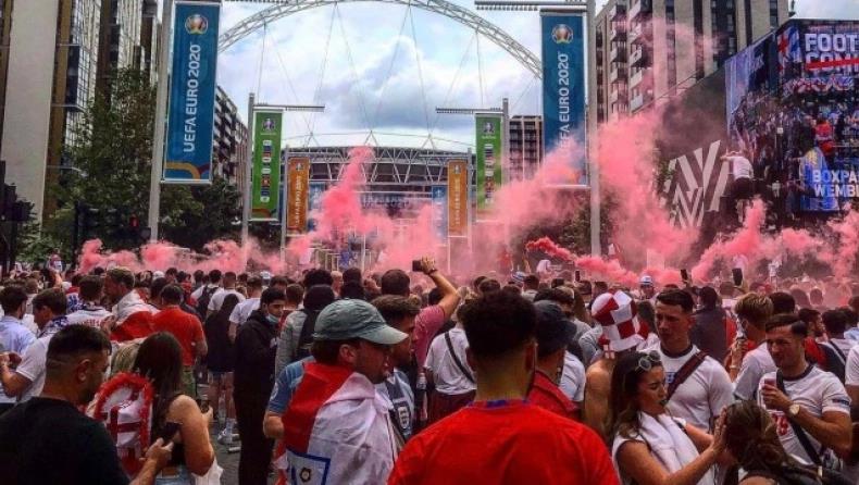 Η Αγγλία κοντράρεται με την Ιταλία στο μεγάλο τελικό του Euro στο «Γουέμπλεϊ» (11/7, 22:00) και οι οπαδοί των Τριών Λιονταριών συγκεντρώθηκαν αρκετά νωρίς έξω από το γήπεδο του Λονδίνου, ωστόσο η κατάσταση ξέφυγε με τους Άγγλους να τα... σπάνε και κάποιους εξ αυτών να ποδοπατούν την ιταλική σημαία!
