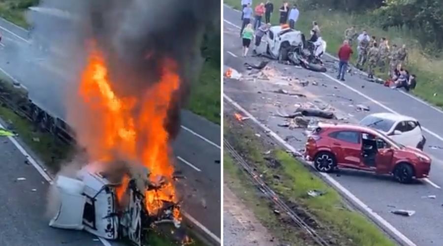Φορτηγό βαρέων εμπορευμάτων έπεσε πάνω σε αυτοκίνητα και εξερράγη σε πολυσύχναστο δρόμο στη Βρετανία, με τις αρχές να εκφράζουν φόβους για πολλούς νεκρούς από το δυστύχημα.