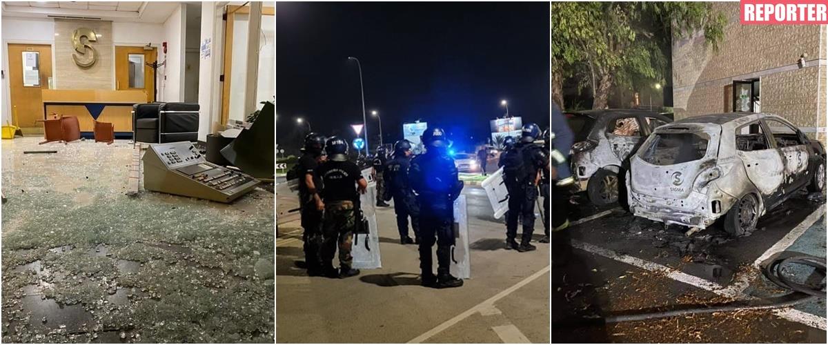 Συγκεκριμένα, άτομα τα οποία βρίσκονταν στην πορεία, έριξαν μολότοφ εντός του χώρου στάθμευσης, με αποτέλεσμα οχήματα να τυλιχθούν στις φλόγες, όπως επίσης και η είσοδος του κτηρίου.