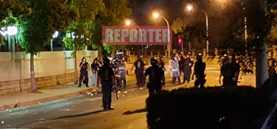 Διαδηλωτές έριξαν μολότοφ τόσο στην είσοδο του Προεδρικού Μεγάρου, όσο και προς τα μέλη της Δύναμης, με την Αστυνομία να απαντά με τη χρήση δακρυγόνων.
