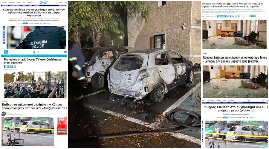 «Κρανίου τόπος ο τηλεοπτικός σταθμός μετά την επίθεση των αντιεμβολιαστών», «Επίθεση με κροτίδες στο κανάλι ΣΙΓΜΑ από διαδηλωτές κατά των μέτρων για τον κορωνοϊό», «Eπίθεση στο συγκρότημα ΔΙΑΣ: Η επόμενη μέρα» είναι μερικοί από τους τίτλους των ρεπορτάζ.