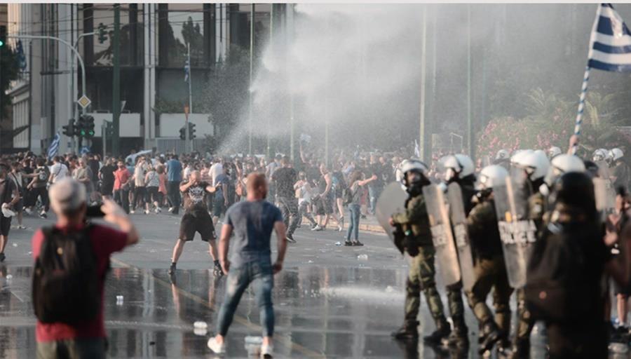 Στην επεισοδιακή διαδήλωση των αρνητών έπεσαν χημικά, ενώ η αστυνομία παρενέβη με ρίψεις νερού.