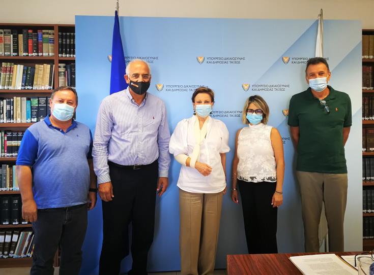 Η Υπουργός Δικαιοσύνης και Δημόσιας Τάξης Στέφη Δράκου είχε συνάντηση με τον Πρόεδρο και τα μέλη της Αρχής Αδειοδότησης Σταδίων και συζήτησε διάφορα θέματα που απασχολούν την Αρχή.