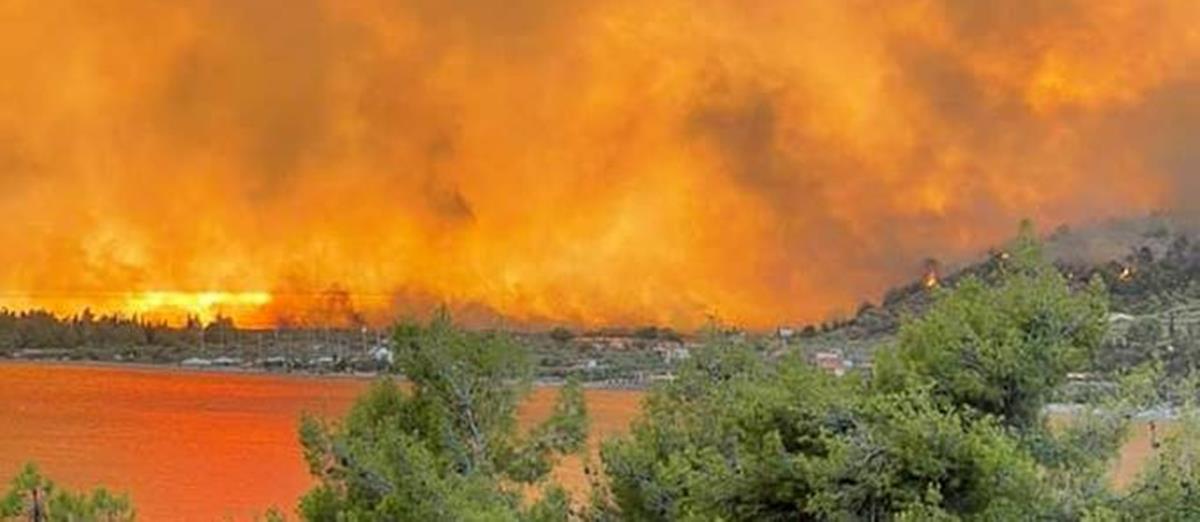 Δραματικές ώρες ζουν τις τελευταίες ώρες οι κάτοικοι στις Ροβιές στην Εύβοια, με τις αρχές να καλούν τους κατοίκους και τους τουρίστες να συγκεντρωθούν όλοι στην παραλία. Ένα τεράστιο μέτωπο φωτιάς έρχεται από τη βόρεια πλευρά με φλόγες που ξεπερνούν και τα 20 μέτρα μέσα σε πευκόφυτη περιοχή σε αρκετά σημεία. Οι φλόγες κάλυψαν ακόμη και το δρόμο από τη Λίμνη προς τις Ροβιές με συνέπεια η Αστυνομία να διακόψει κάθε κυκλοφορία για να μην κινδυνεύσουν ανθρώπινες ζωές.
