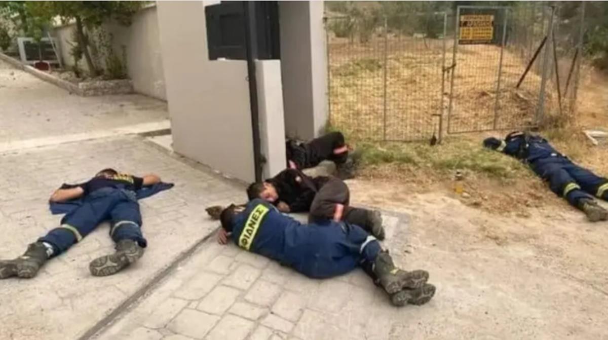 Εξουθενωμένοι πυροσβέστες κοιμούνται στον δρόμο-Η φωτογραφία που έγινε viral