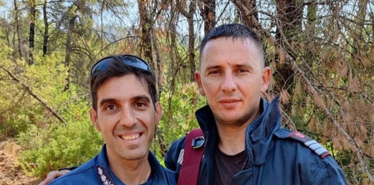 Δυο πυροσβέστες μαζί στο πύρινο μέτωπο